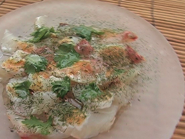 Изысканное блюдо из дорады.Состав:дорада — 1 штука;немного фенхеля, тобаско, кориандра и оливкового масла.